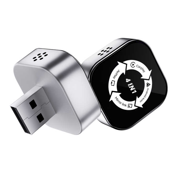 อะแดปเตอร์ Silver Plug & Play USB Port 4 in 1 สำหรับเชื่อมต่อ Wireless CarPlay และ Android Auto สำหรับอัปเกรด OEM Wired CarPlay