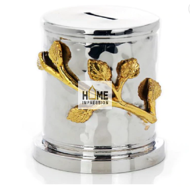 ชามสลัดสแตนเลสสีเงินขัดเงาหรูหราสีขาวแบบใช้แล้วทิ้ง เป็นมิตรกับสิ่งแวดล้อม ดีไซน์มินิมอล ตกแต่งลายใบไม้ดอกไม้