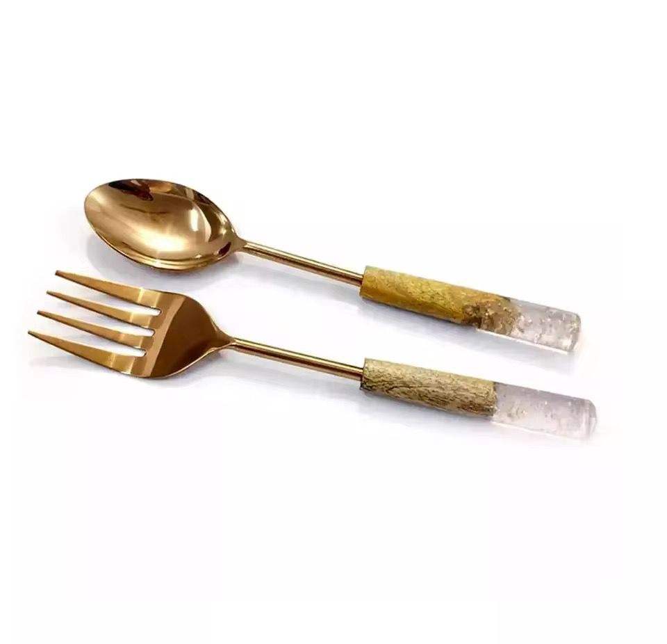 ชุดช้อนเสิร์ฟสลัดขัดเงาสีเงิน & ชุดส้อมสำหรับตกแต่งโต๊ะในงานแต่งงานเครื่องครัวอุปกรณ์รับประทานอาหารชุดที่จับแบบผูกเป็นวงยาว