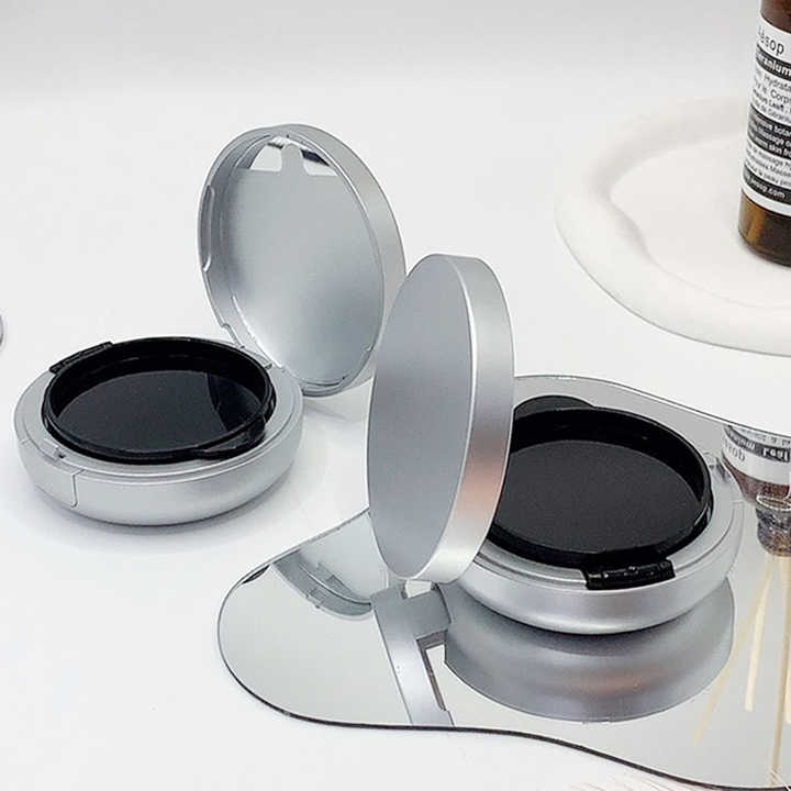 แป้งรองพื้นคอนซีลเลอร์สีเงินบีบีครีมภาชนะเติมได้พร้อมบรรจุภัณฑ์เครื่องสำอางปรับแต่งได้แบบกระจก