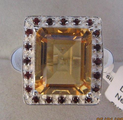 แหวนเงินวินเทจพร้อมอัญมณีซิทรีนและโกเมนสำหรับการหมั้นงานแต่งงานหรืองานเลี้ยงครบรอบ