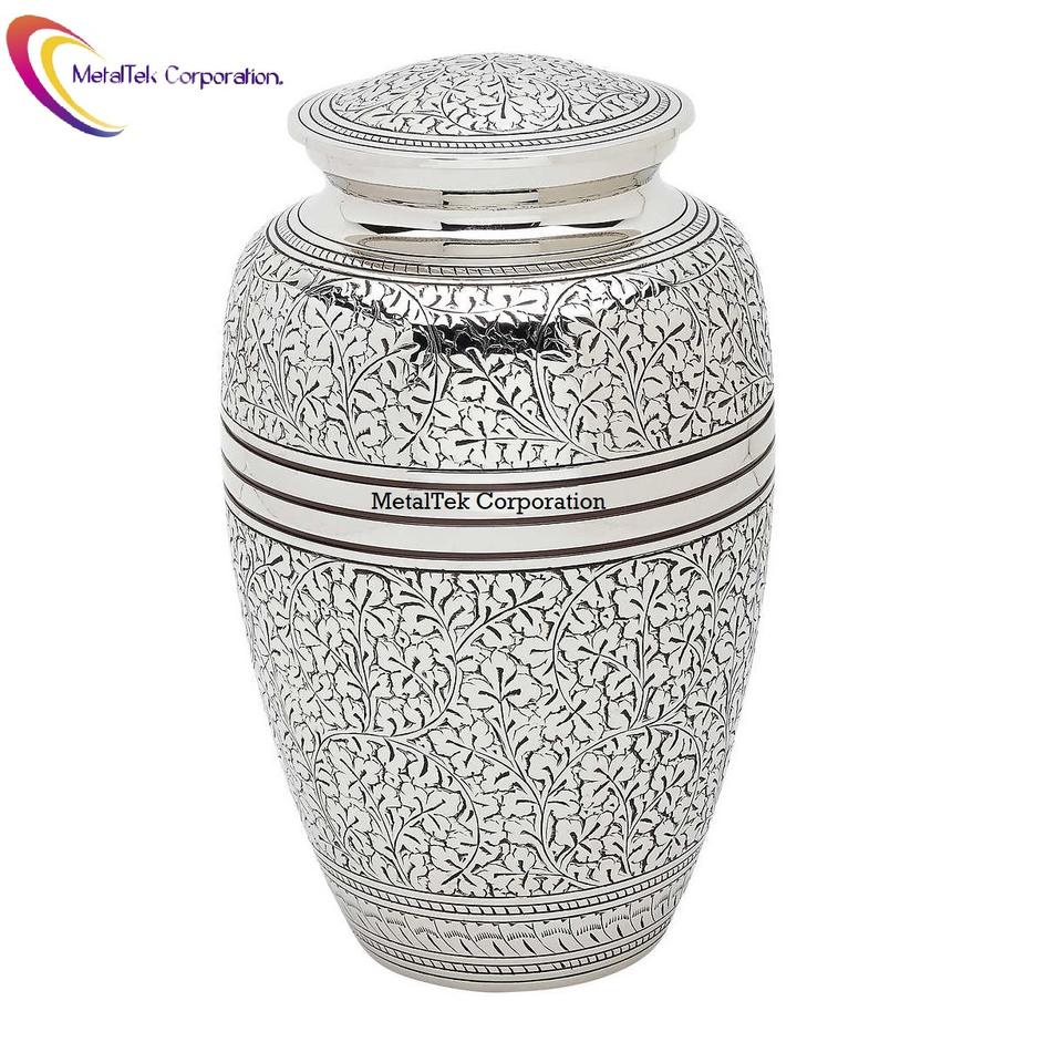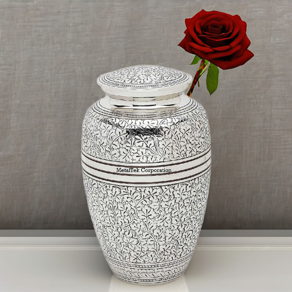 โกศใส่เถ้ากระดูกของผู้ใหญ่ทำจากโลหะอัลลอยด์สำหรับงานศพดีไซน์คลาสสิกสีเงินโรสโกลด์