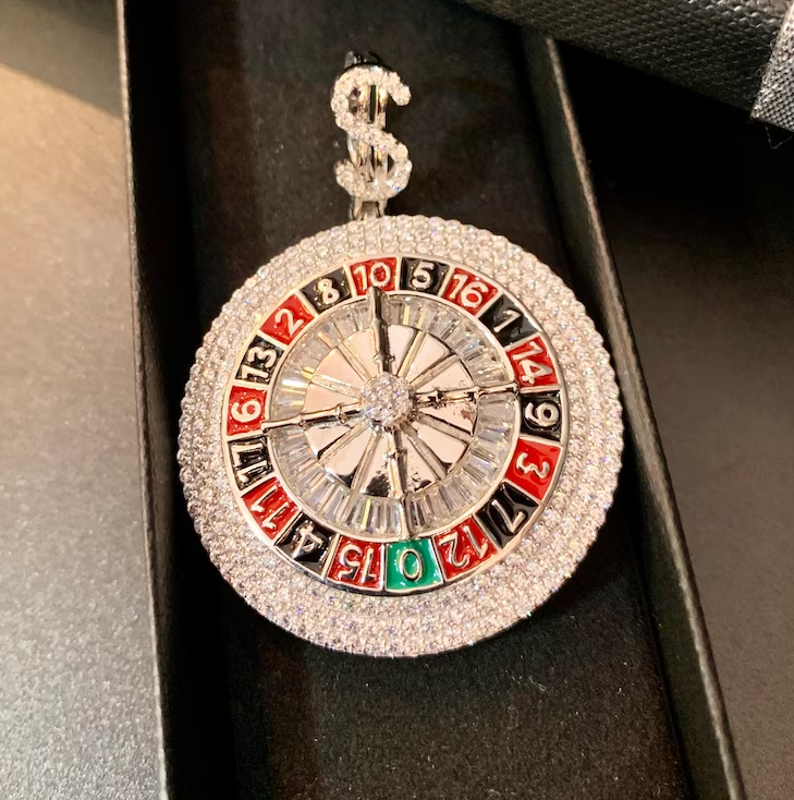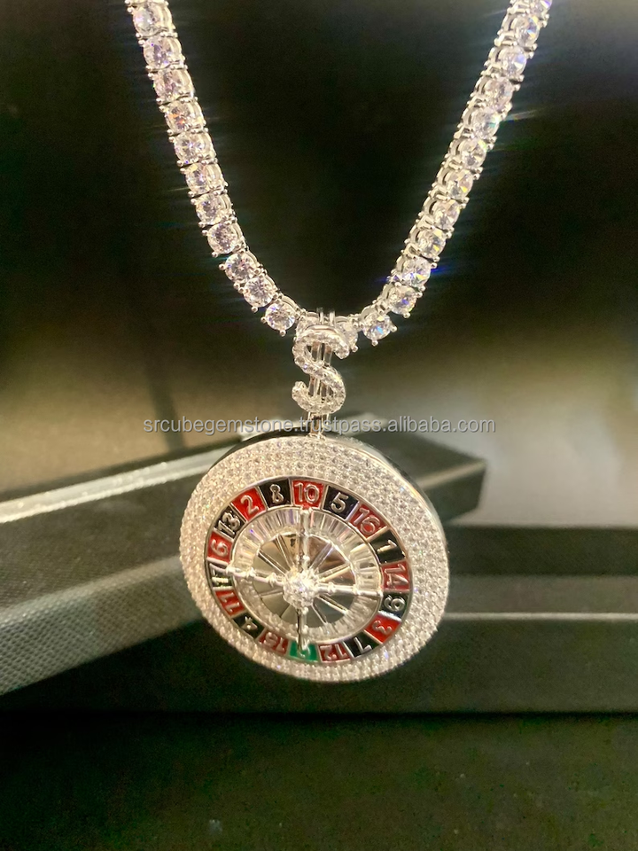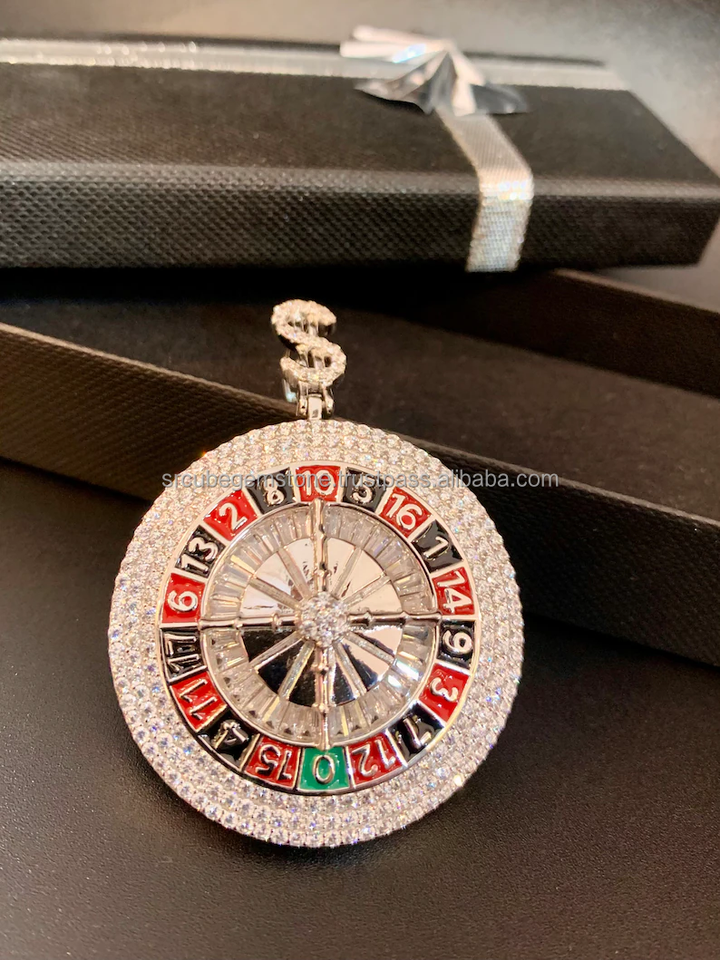 จี้ล้อรูเล็ตสีเงินจี้หิน Cz Iced-Out ปรับแต่งเสน่ห์แฮนด์เมดจี้เพชร Iced Out