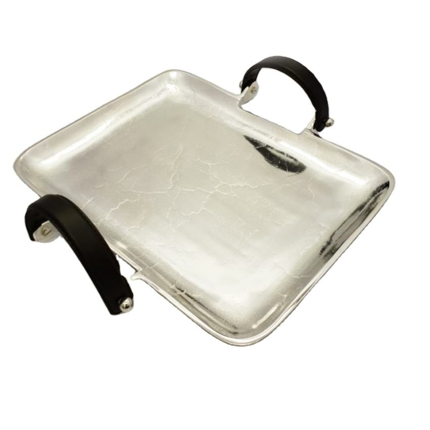 ถาดเสริฟเงินทรงสี่เหลี่ยมพร้อมมือจับหนัง,ถาดสำหรับใช้ในห้องครัวดีไซน์ใหม่สำหรับตกแต่งบ้านและบนโต๊ะอาหารร้านอาหาร