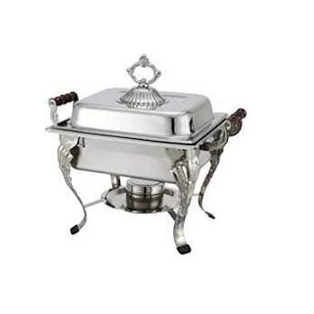 จานอุ่นอาหารสำหรับจัดเลี้ยงสีเงินพร้อมขาตั้งถาดอุ่นอาหารสำหรับโต๊ะทานอาหารเย็น
