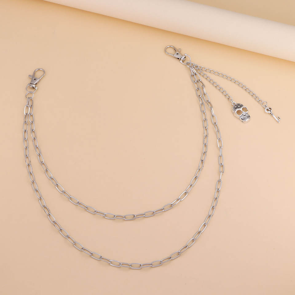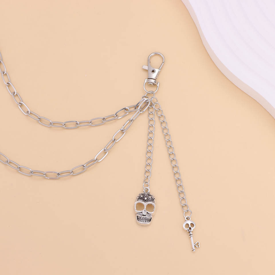 color:Silver skull key trouser chain