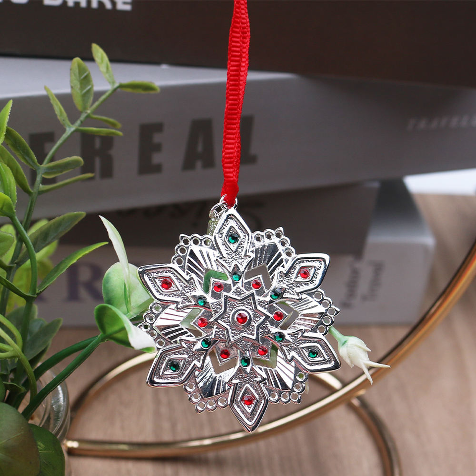 เครื่องประดับคริสต์มาสโลหะรูปเกล็ดหิมะสีเงิน งานแกะสลักลายฉลุละเอียดอ่อน งานฝีมือสั่งทำพิเศษ ตกแต่งต้นคริสต์มาสปี 2026