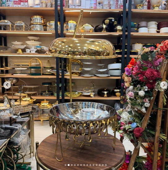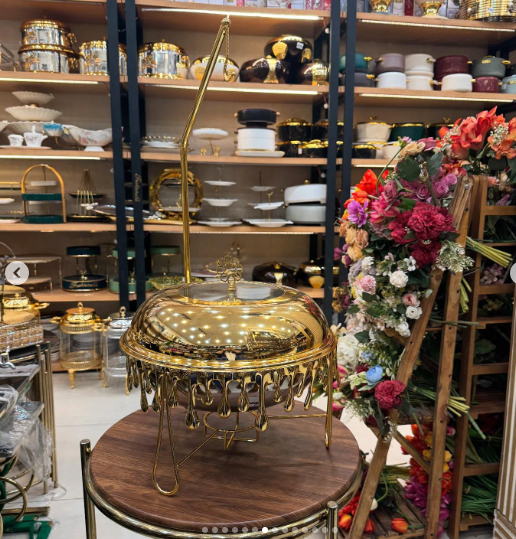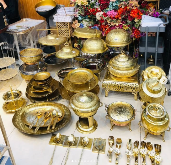 จานอุ่นอาหารสีทองสแตนเลสสีเงินสำหรับโรงแรมจานเสิร์ฟหรูหราปรับแต่งได้ตามต้องการ
