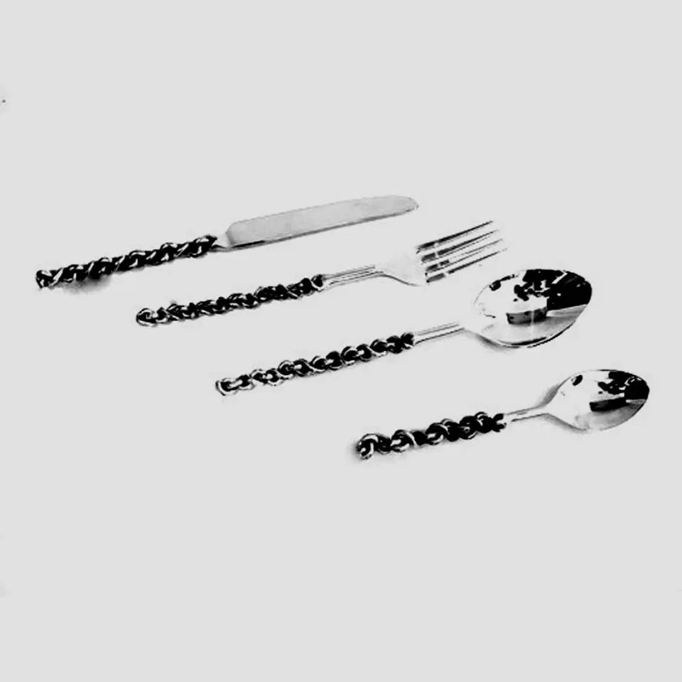 ชุดช้อนส้อมสแตนเลสสีเงินพร้อมด้ามจับดีไซน์หรูหรา สำหรับรับประทานอาหาร ใช้ในครัว งานแต่งงาน และโรงแรม