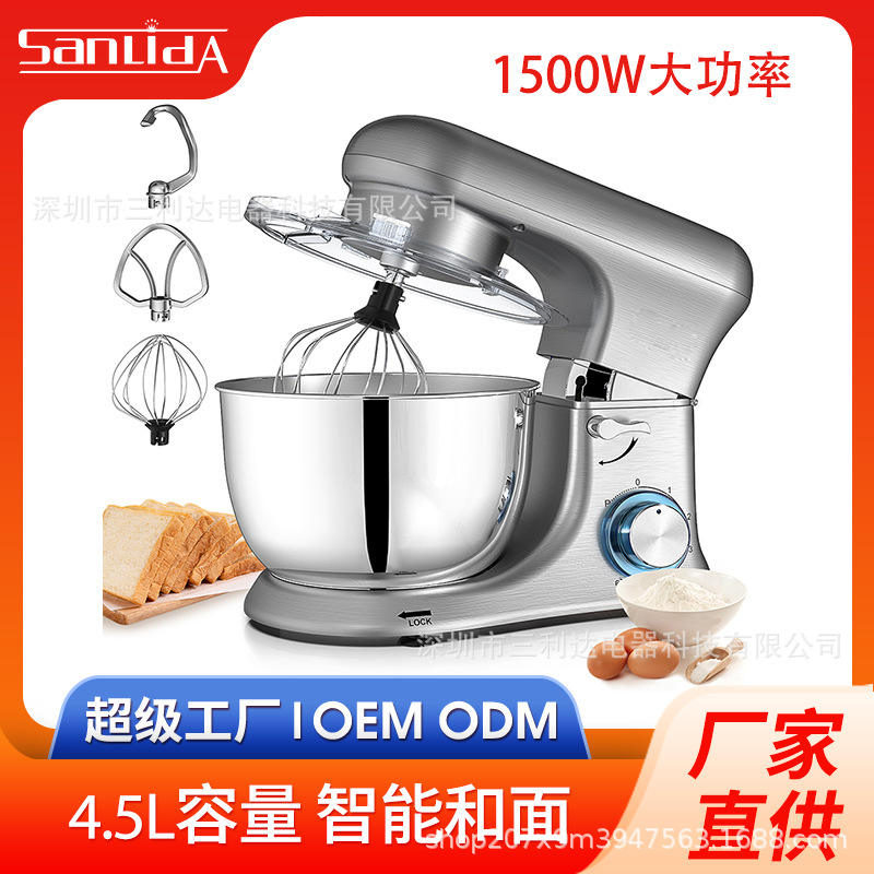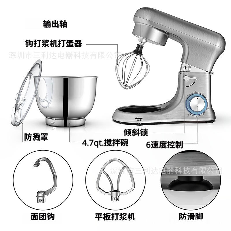 Silver Stand Mixer 4.5L Tilt Head Design Electric Food Processor Multifunctional Home Baking Mixer With Whisk Attachment
