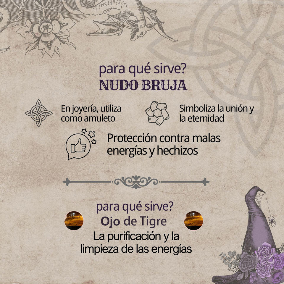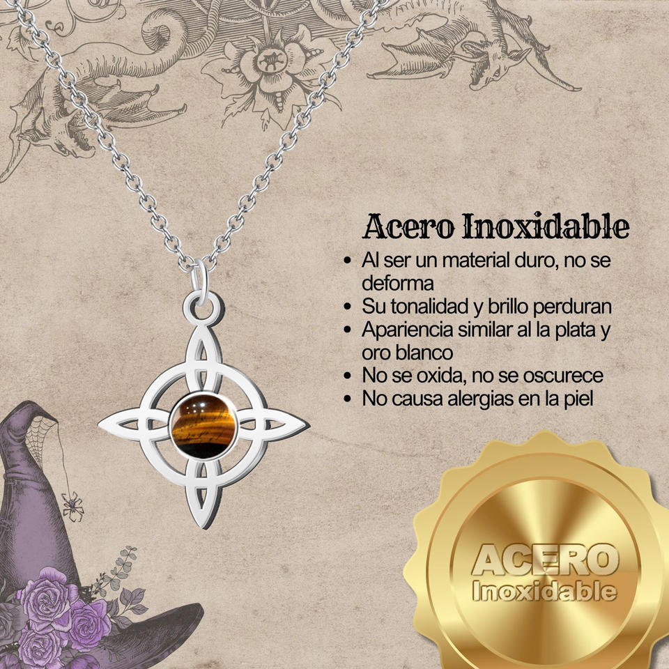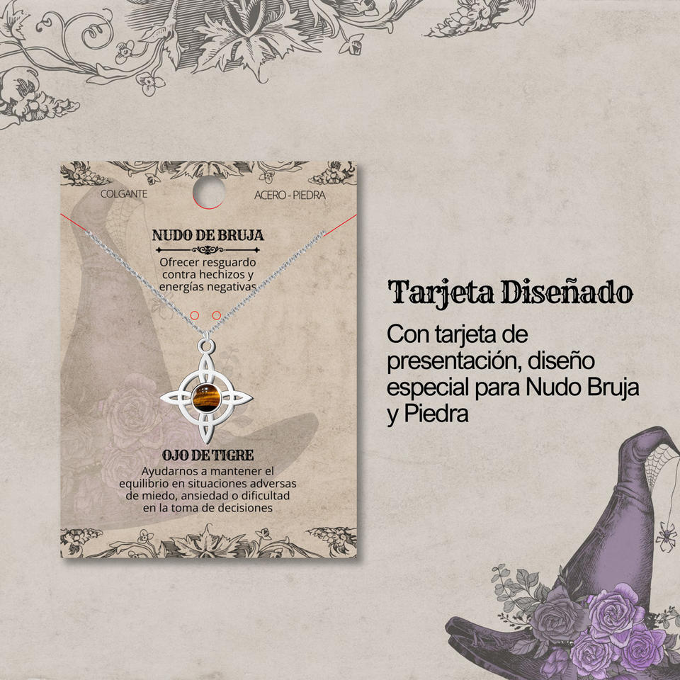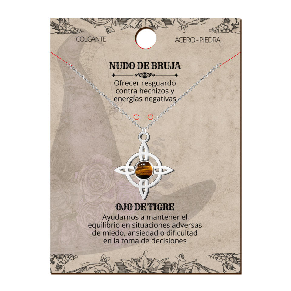 Stainless Steel Witch's Knot Pendant Drop-shaped Tiger's Eye Gemstone Amulet Lucky Protective Stone Necklace Minimalist Link