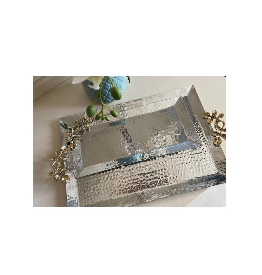 ถาดเงินชุด 2 คลาสสิกตกแต่งบ้านขนมหวานจอแสดงผลเสิร์ฟจาน Eid ฉลองตกแต่งตารางถาดต่ําราคา