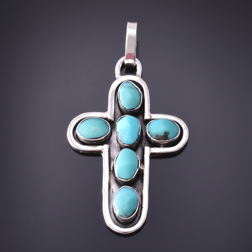 Sonyei Coho จี้เงินรูปไม้กางเขนสีเงินสีเทอร์ควอยซ์สีเงินทำด้วยมือ925สเตอร์ลิงเครื่องประดับแฟชั่นสำหรับเด็ก