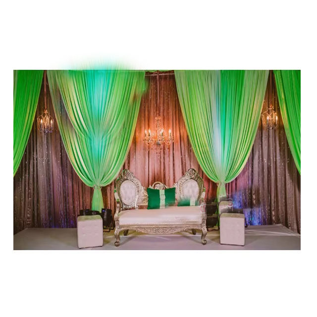 บัลลังก์แกะสลักไม้สีเงินสไตล์วิกตอเรียสำหรับงานแต่งงานผลิตจากทองเหลืองสองที่นั่งสำหรับงานแต่งงาน