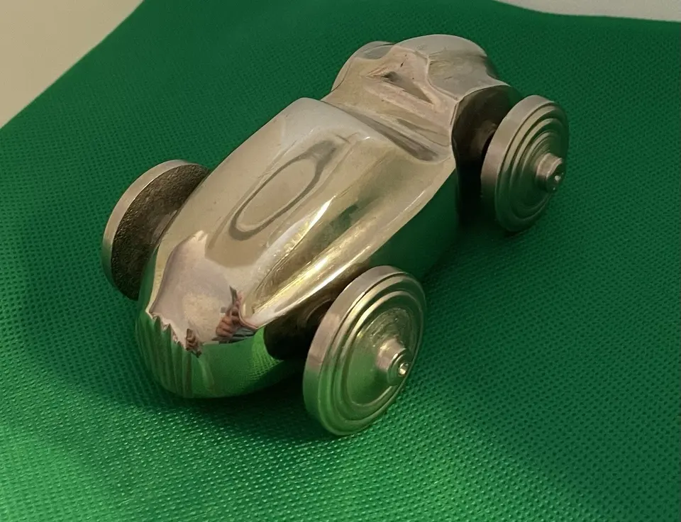 รถแข่งสไตล์วินเทจสีเงินของเล่นโลหะสำหรับสะสมตกแต่งโต๊ะทำจากอลูมิเนียมของขวัญขนาดเล็ก