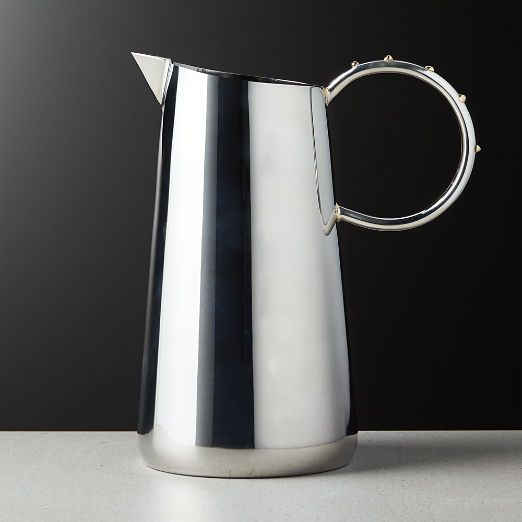 เหยือกน้ำดื่มสแตนเลส304สีเงินเหยือกโลหะทำมือดีไซน์ดีเครื่องใช้บนโต๊ะในครัว
