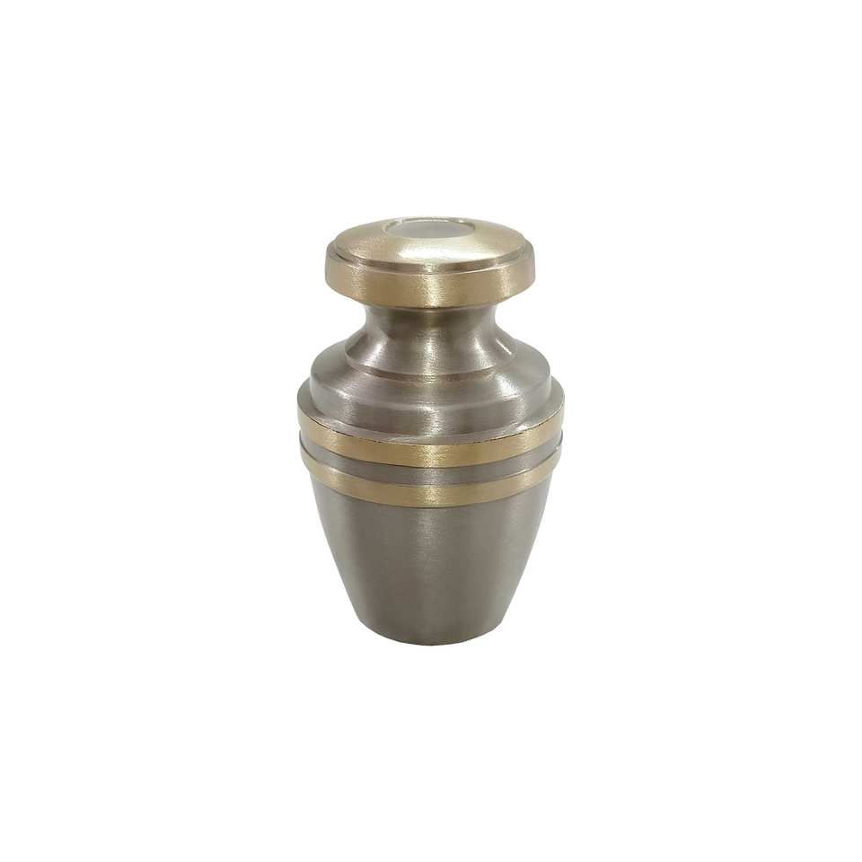 โกศโลหะเงินพร้อมสลักใบไม้ทำจากทองเหลืองขนาดเล็กเป็นของชำร่วยสำหรับผู้ใหญ่หรือขี้เถ้าสัตว์เลี้ยงสำหรับตกแต่งงานศพ