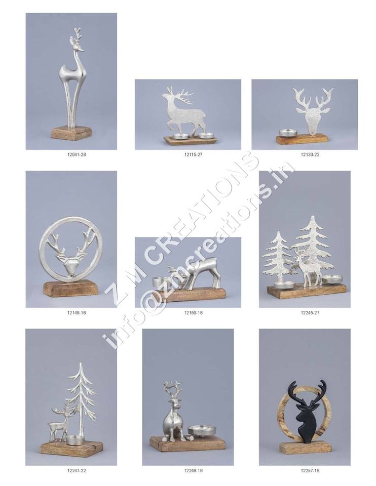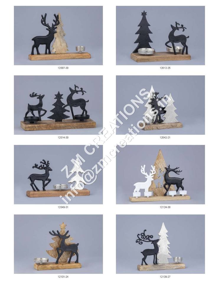 เชิงเทียนสีเงินรูปต้นคริสต์มาสที่วางเทียนรูปกวางเรนเดียร์สีดำสำหรับตกแต่งเทศกาลคริสต์มาสฐานไม้ปรับแต่งได้ตามต้องการ