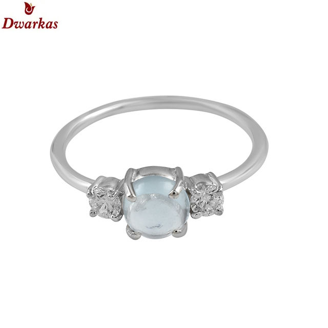 แหวนแต่งงานเงินสเตอริง925ของผู้หญิงเครื่องประดับพลอยบุษราคัมสีฟ้าและอัญมณีหลายเม็ดเจียระไนเพชรหลักสำหรับงานปาร์ตี้