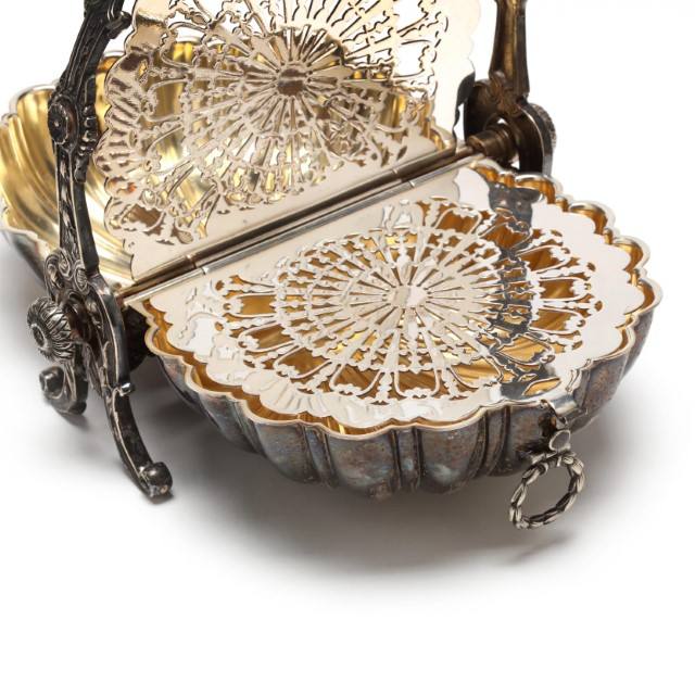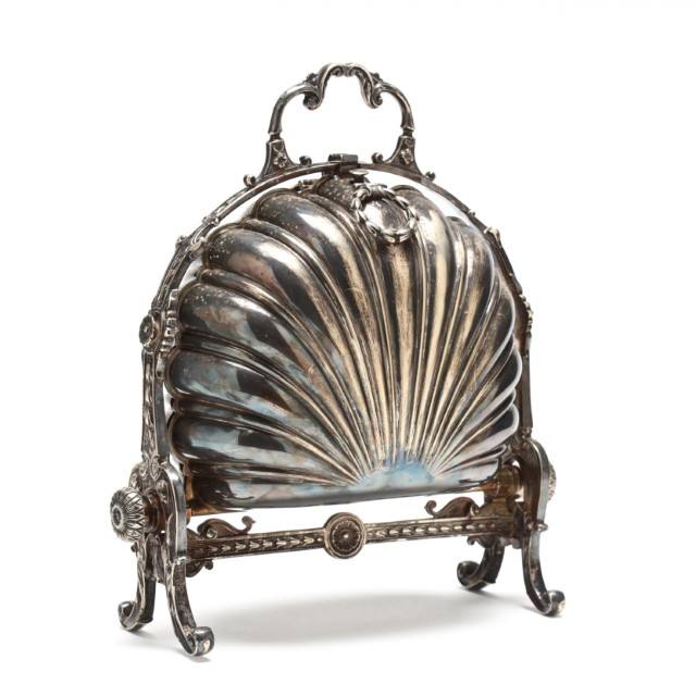 เครื่องอุ่นบิสกิตเปลือกหอยแบบพับได้ทำจากเงินโบราณโบราณขนมปังอังกฤษวิคตอเรียแผ่นเชฟฟิลด์ศตวรรษที่19th แผ่นคู่