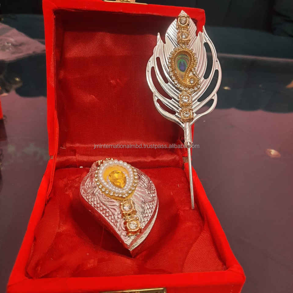 กล่องซินดูร์สีเงินและแท่งติลักในชุดของขวัญสำหรับเทศกาลดีวาลี
