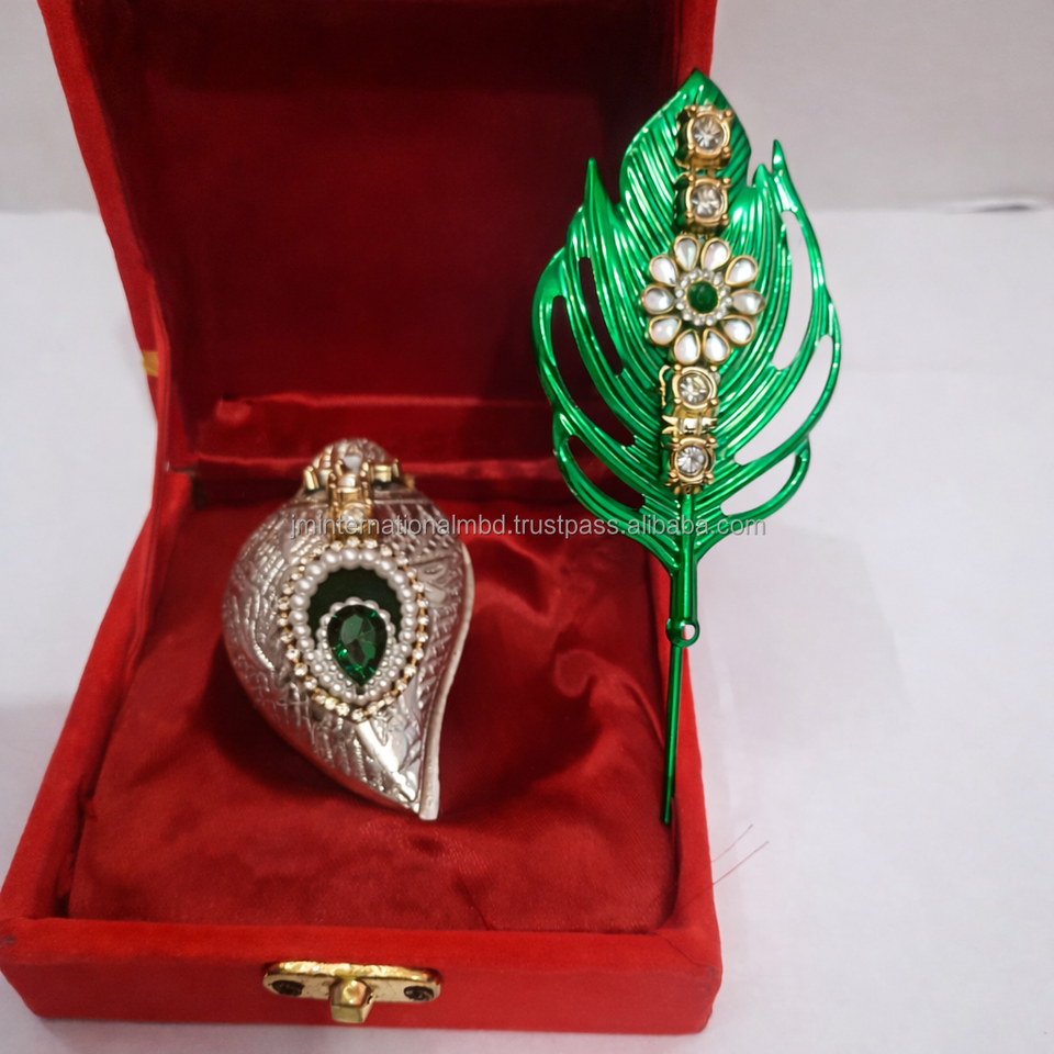 กล่องซินดูร์สีเงิน ประดับด้วยหินสีเขียวและแท่งทิลักสีเขียวในชุดของขวัญสำหรับเทศกาลดิวาลี
