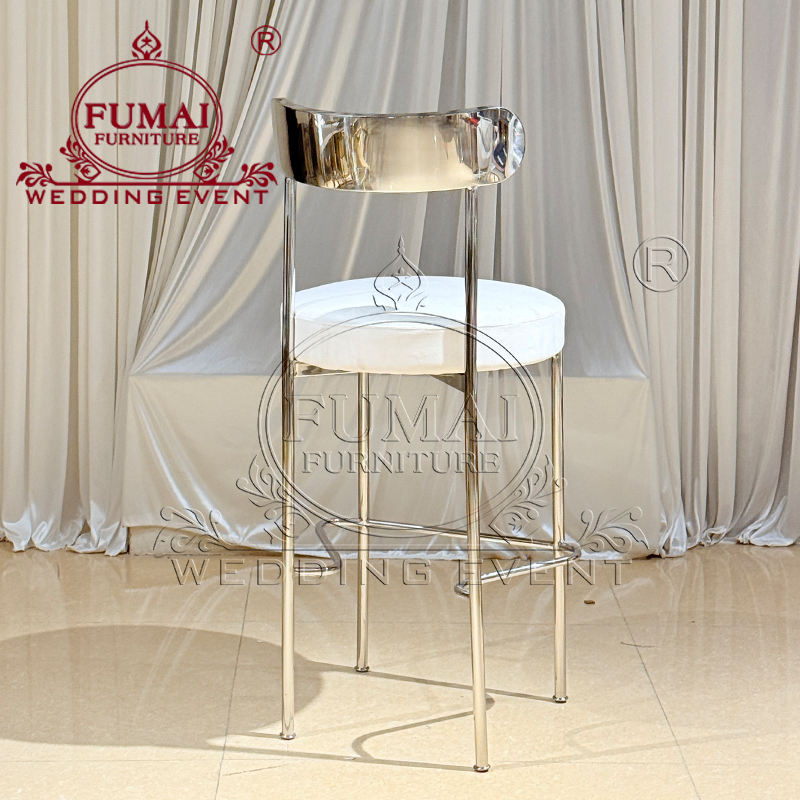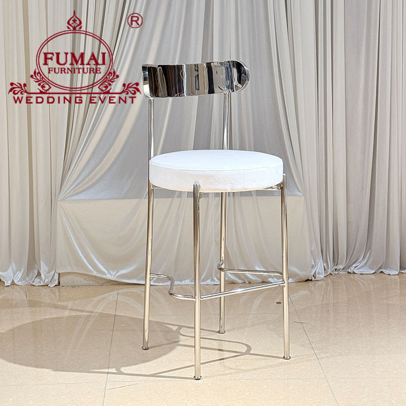 เก้าอี้บาร์สูงแบบมีโครงสแตนเลสสีเงินหุ้มเบาะสำหรับร้านอาหารและบาร์