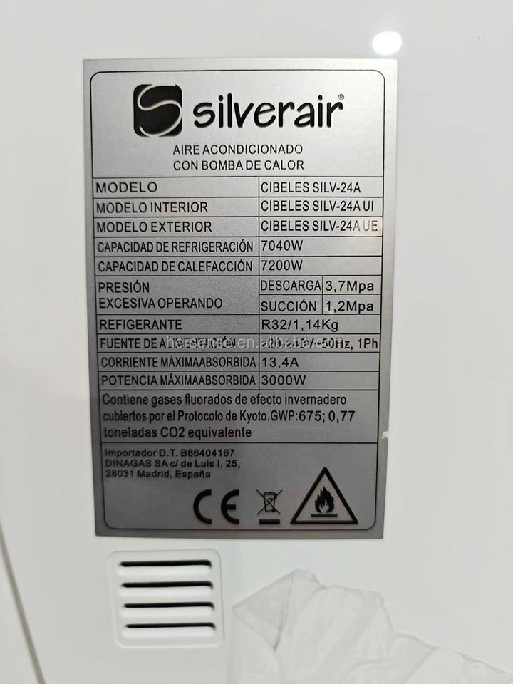 Silverair 24000BTU อินเวอร์เตอร์แบบติดผนัง, เครื่องปรับอากาศระบายความร้อนและความร้อน R32 220V 50Hz พร้อมไวไฟควบคุมอัจฉริยะ