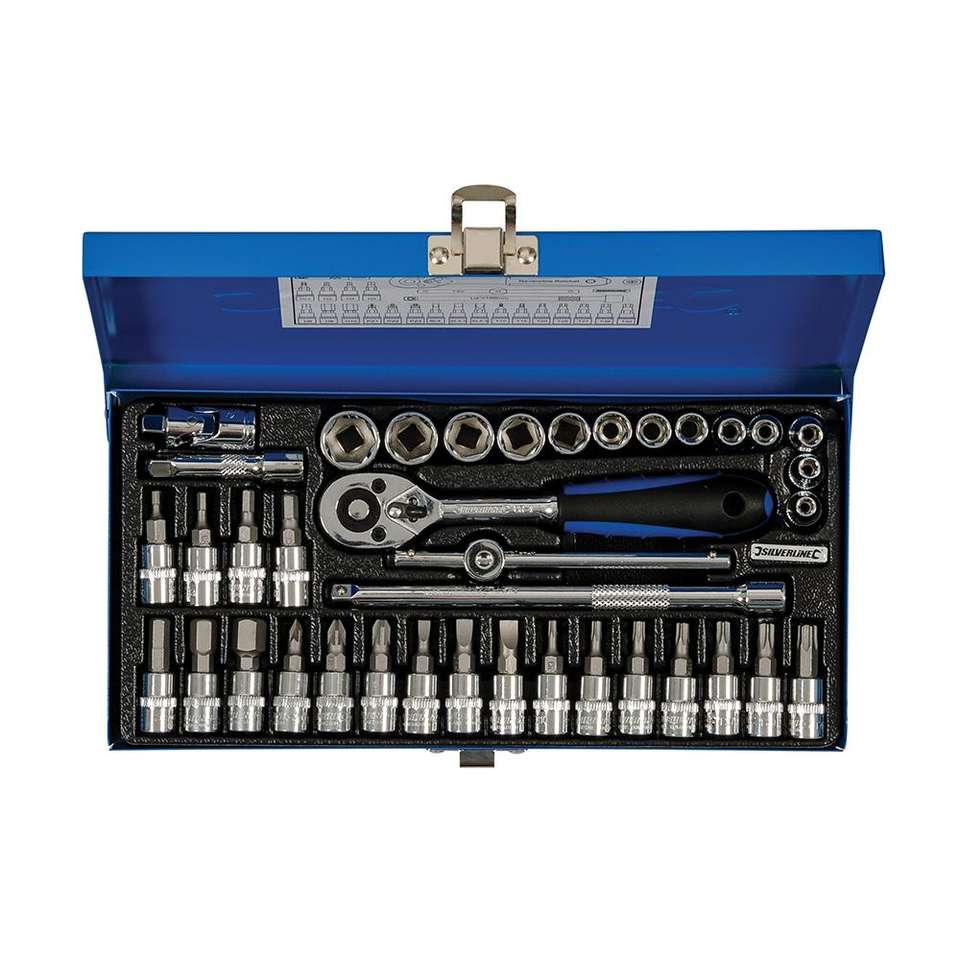 ชุดประแจซ็อกเก็ตเงิน1/4 "38pce 38pce เมตริกไดรฟ์