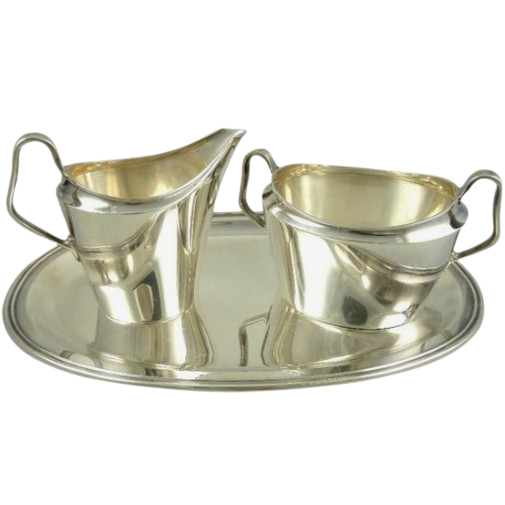 เครื่องเงิน เครื่องทําครีมสแตนเลสและชุดน้ําตาลพร้อมถาด เครื่องครัวโลหะสไตล์โมเดิร์น เหยือกทําครีมนม