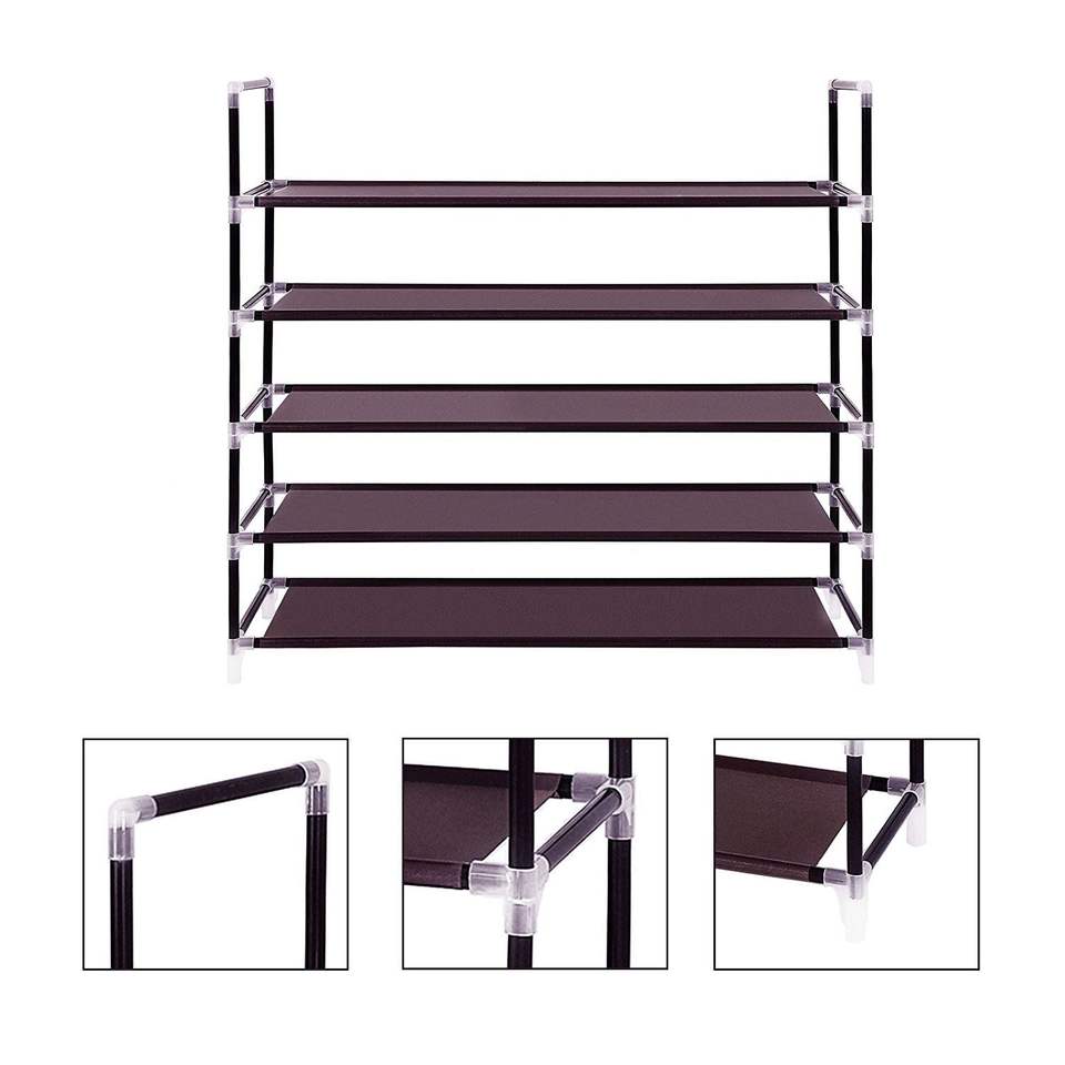 ชั้นวางรองเท้าผ้าใยสังเคราะห์5ชั้นแบบเรียบง่ายพร้อมที่จับสีน้ำตาลเข้ม
