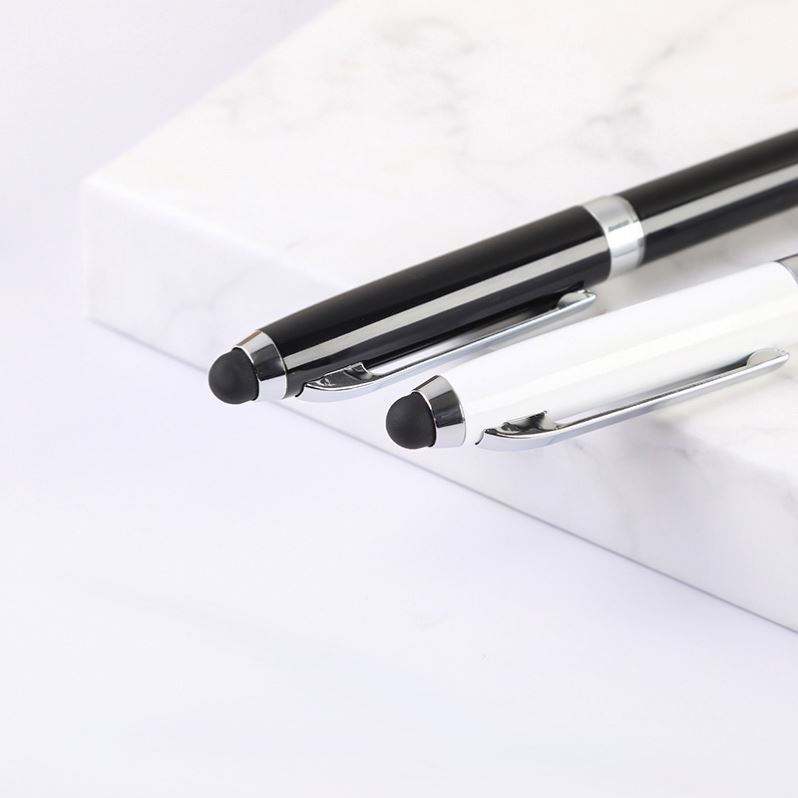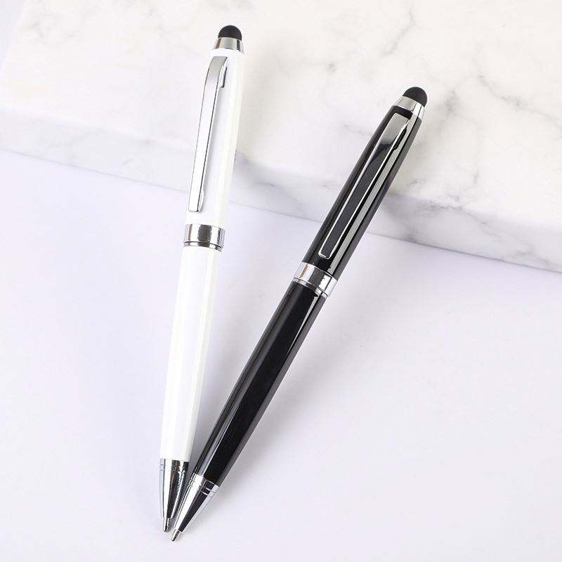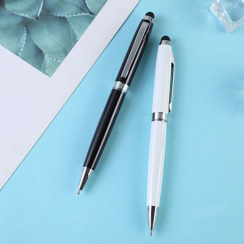 ปากกาลูกลื่นโลหะหนักแบบสัมผัสหน้าจอ สีดำเรียบง่าย สำหรับสำนักงานธุรกิจ สามารถพิมพ์โลโก้ได้ ปากกาเขียนสำหรับนักเรียน