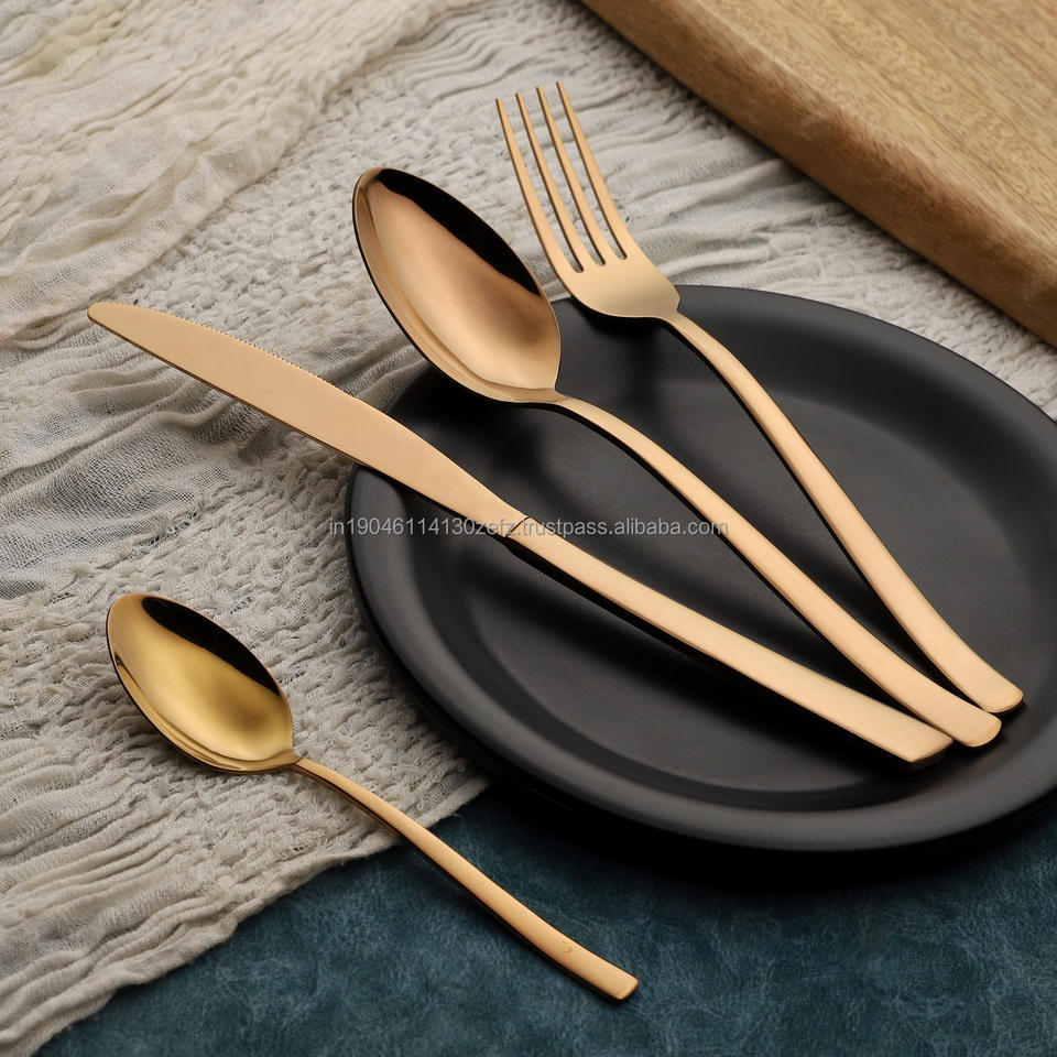 Simple Black Pvd Tapered Stainless Steel Cutlery/Flatware Set Grade 202/304 Shinny Spoon Fork and Knife Baby Spoon-Made in India