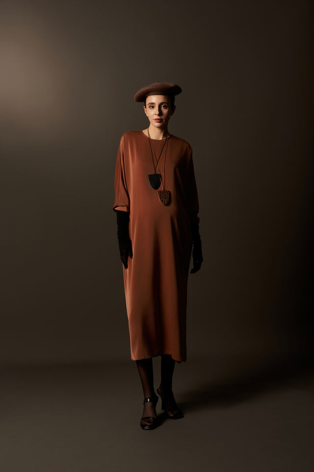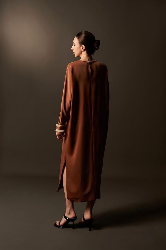 เดรสผ้าไหมซาตินทรงหลวมสไตล์มินิมอล แขนยาวปานกลาง ระบายอากาศได้ดี เหมาะสำหรับฤดูร้อน กระดุมเรียบง่าย ผ่าข้าง