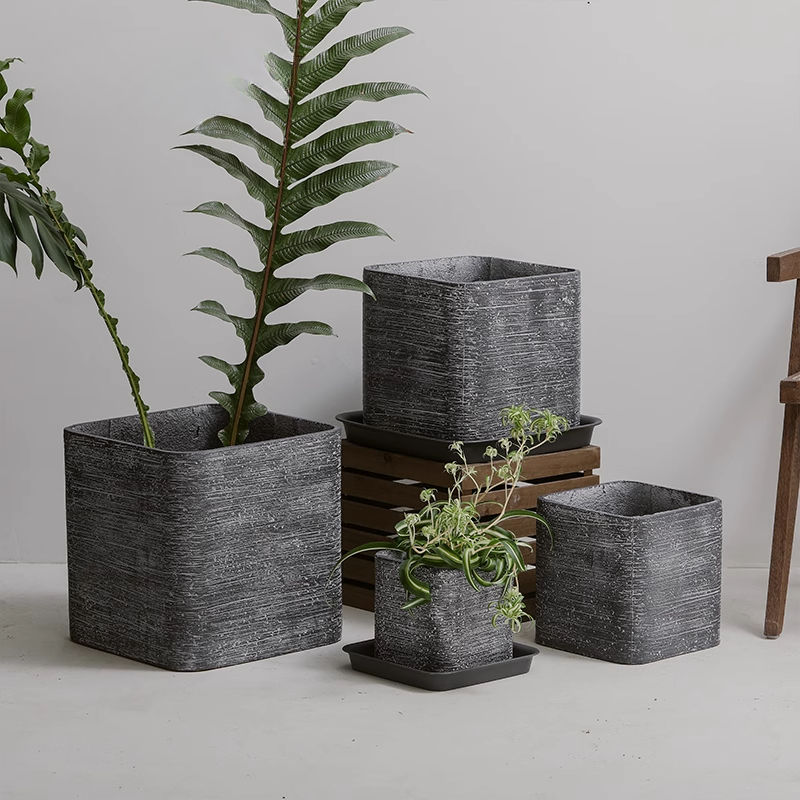 Large Size Grey Cement Flower Pot Rounded Square Shape Square Planter for Home and Garden Use