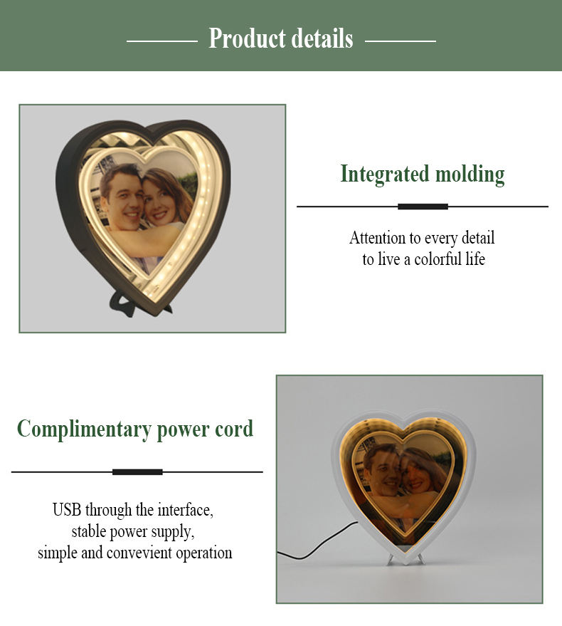 กรอบกระจกรูปหัวใจเรืองแสงสำหรับคู่รักแบบเรียบง่าย