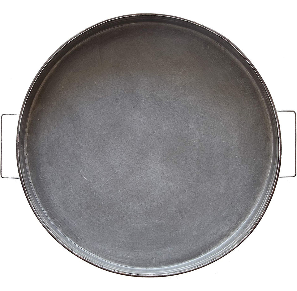 ถาดเสิร์ฟเครื่องดื่มโลหะชุบสังกะสีทรงกลมพร้อมที่จับสำหรับห้องครัวบ้านและงานแต่งงาน