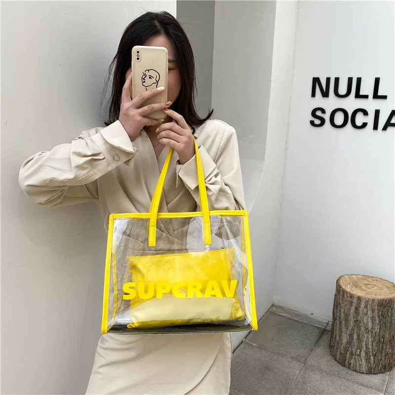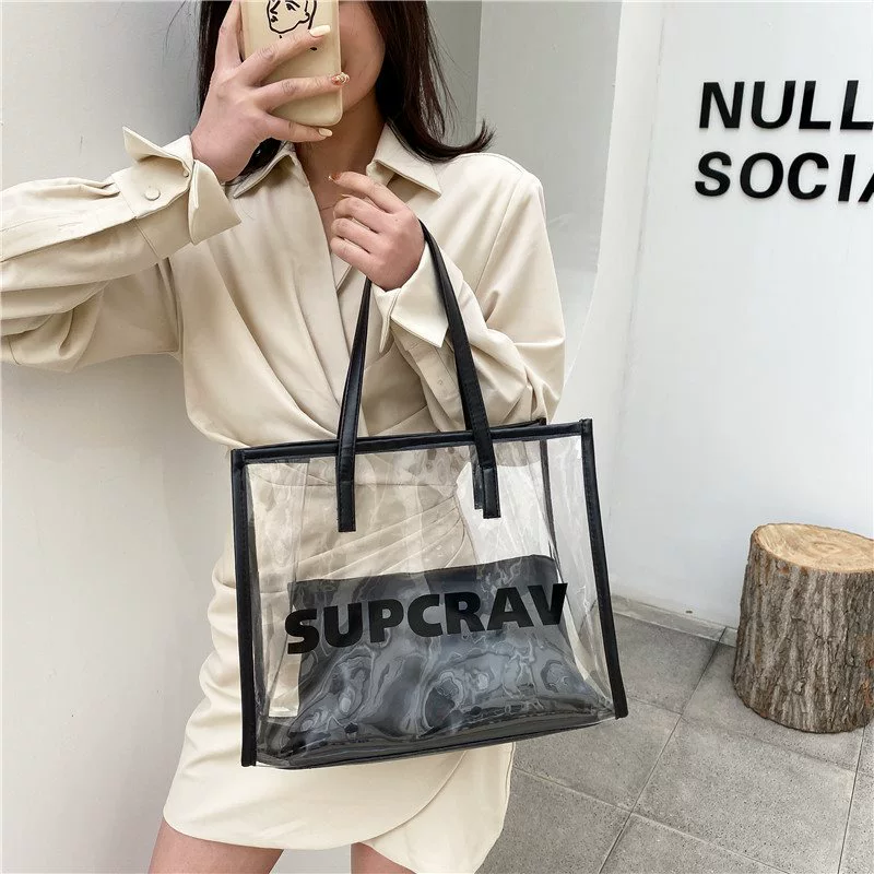 กระเป๋าโท้ทใส่เครื่องสำอางสำหรับเดินทางโรงแรมชายหาดโปร่งใสออกแบบโลโก้ได้อย่างเรียบง่าย