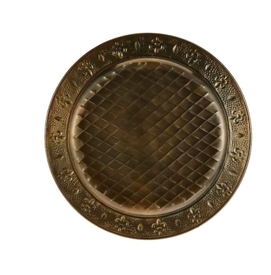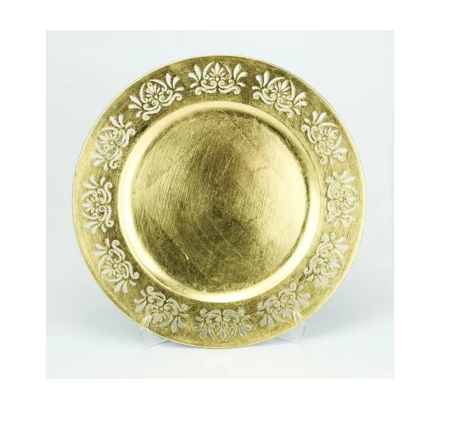 แผ่นชาร์จทองเหลืองแบบเรียบง่ายสำหรับตกแต่งโต๊ะแต่งงานแผ่นชาร์จทองคำแบบแข็งและงานฝีมือธรรมชาติตัวอย่างฟรี