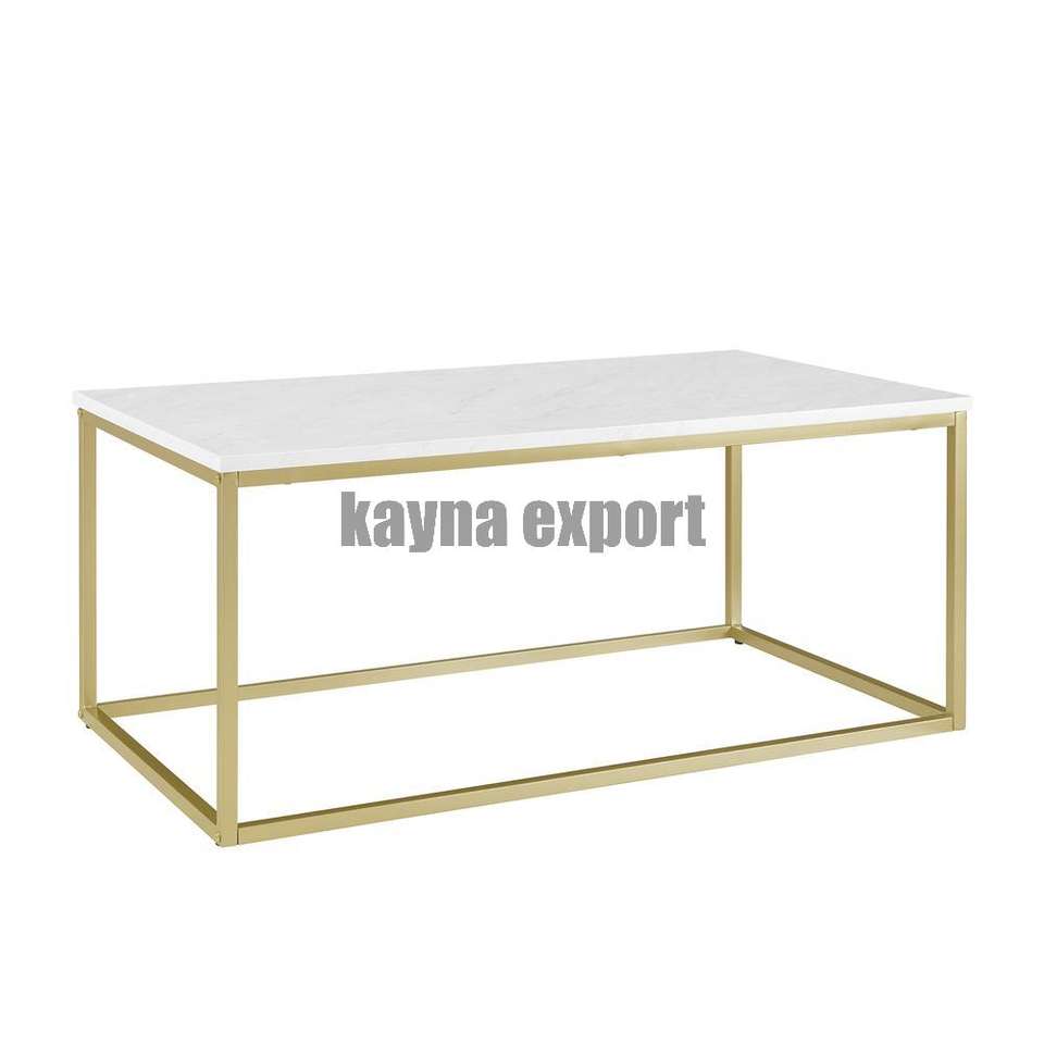 โต๊ะกลางห้องนั่งเล่นดีไซน์เรียบง่าย โครงโลหะสีทอง ท็อปหินอ่อนเคลื่อนย้ายได้ สไตล์โมเดิร์น