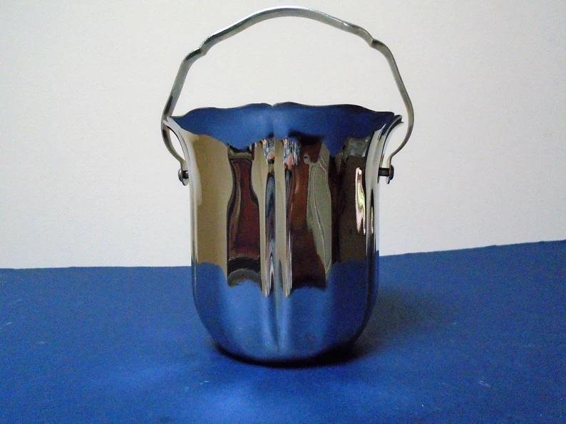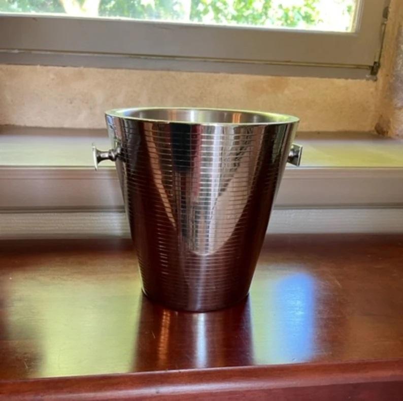 ที่ใส่ขวดน้ำแข็งทรงถังไวน์,ดีไซน์เรียบง่ายใช้ในวันหยุดพร้อมด้ามจับสีเงินทรงกลม