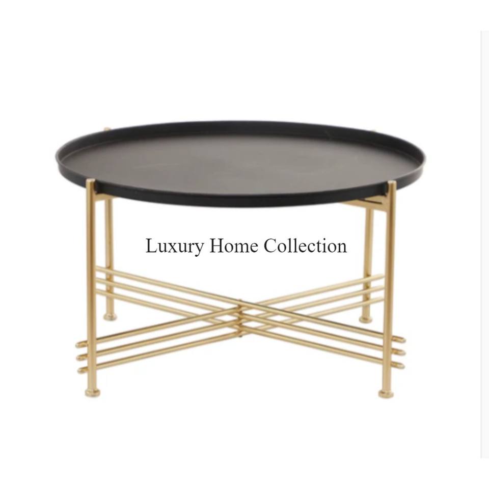 ศูนย์โลหะตกแต่งบ้านและโต๊ะกาแฟดีไซน์เรียบง่ายพร้อมกรอบสีทองและแป้งสีดำเคลือบด้านบนจากอินเดีย