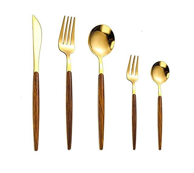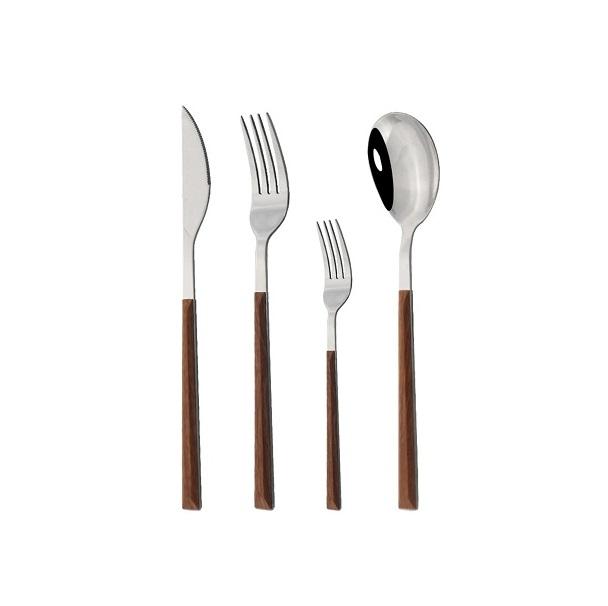 ชุดช้อนส้อมโลหะชุบเงินพร้อมด้ามไม้สี่เหลี่ยมสำหรับบ้านและงานแต่งงานชุดโต๊ะอาหาร