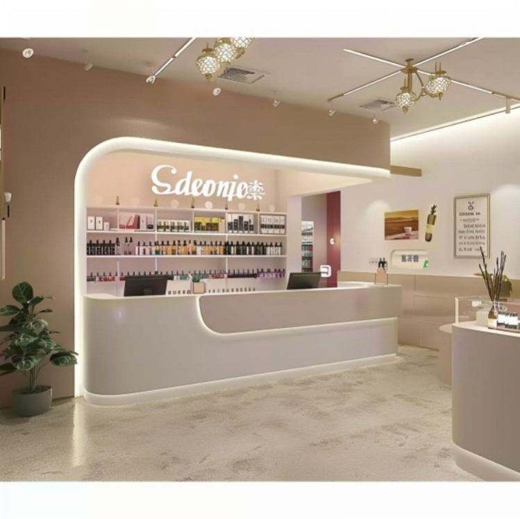 แผนกต้อนรับส่วนหน้าของร้านทำผมสีขาวขนาดเล็กเครื่องบันทึกเงินสดดีไซน์เรียบง่าย