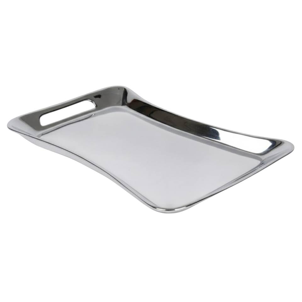 ถาดเสิร์ฟสแตนเลสแบบเรียบง่ายพร้อมหูจับ คุณภาพสูง ขัดเงาสีเงิน รูปทรงสี่เหลี่ยมผืนผ้า สำหรับใช้ในบ้าน
