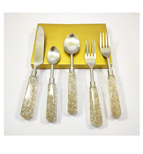 ชุดช้อนส้อมมีดสแตนเลสพร้อมชุดเครื่องเงิน5ชิ้นดีไซน์เรียบง่ายใช้สำหรับร้านอาหารโรงแรม