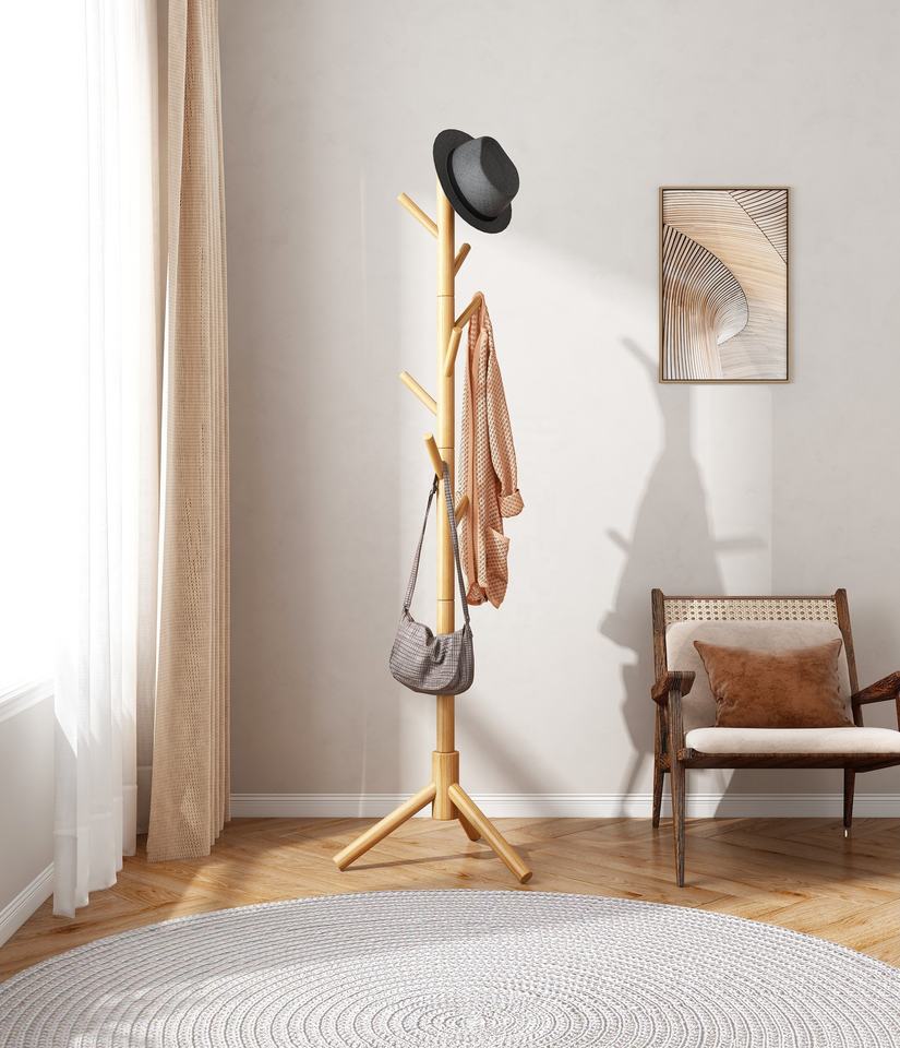 ที่แขวนเสื้อโค้ทไม้สีเข้มรูปทรงต้นไม้ดีไซน์เรียบง่ายนิวซีแลนด์