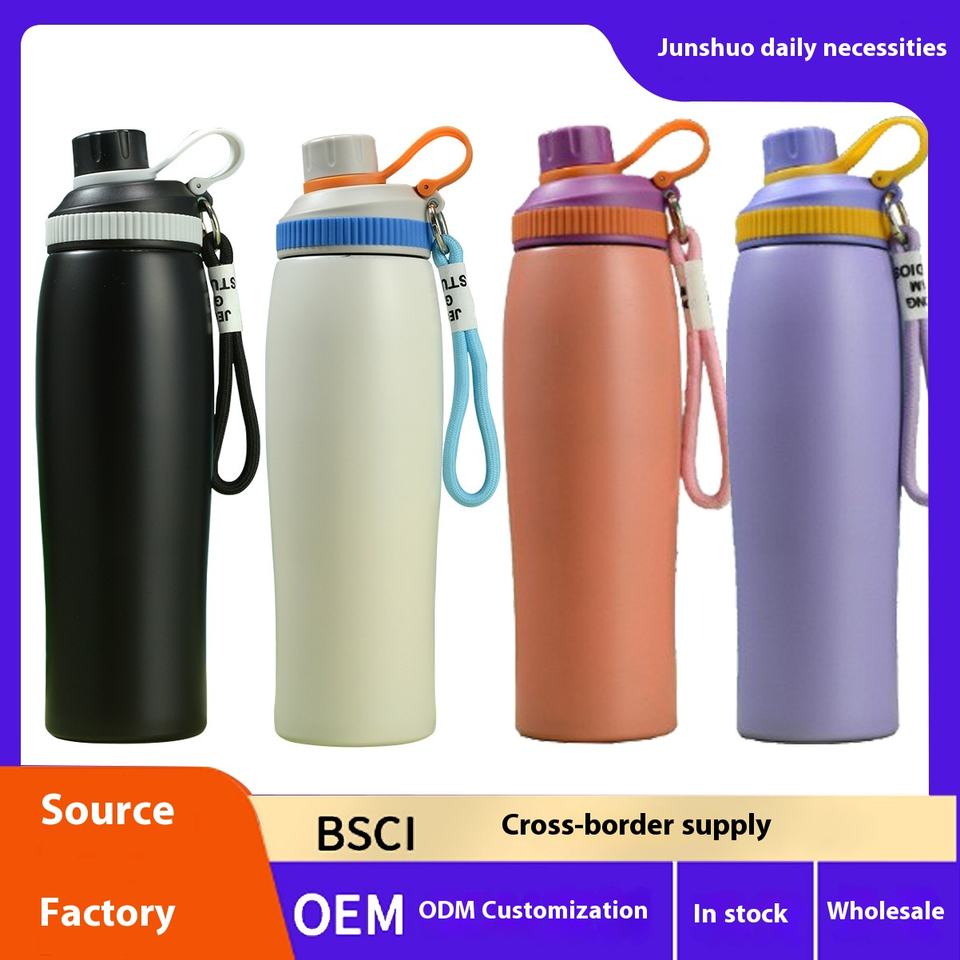 แก้วน้ำกีฬาสแตนเลสสองชั้นแบบเรียบง่ายพร้อมฝาปิดใหม่ชุดของขวัญเป็นของขวัญแบบสุญญากาศสำหรับนักธุรกิจใช้ภายนอกอาคาร