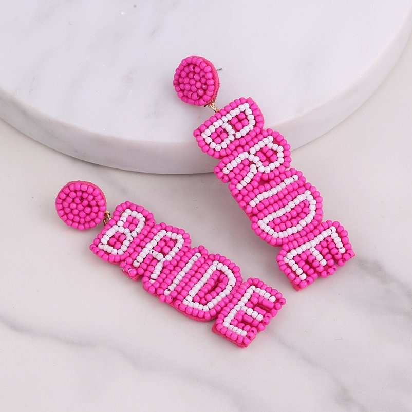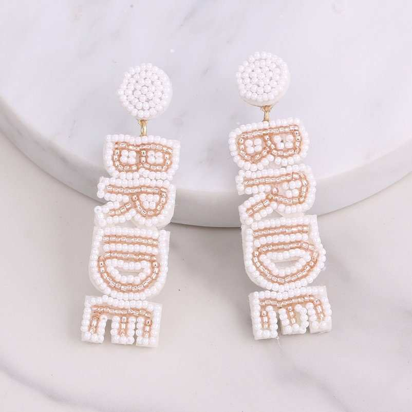 เครื่องประดับผู้หญิงทำมือ น้ำหนักเบา ใช้งานได้หลากหลาย สไตล์เรียบง่าย ประดับด้วยลูกปัดข้าว รูปตัวอักษรเจ้าสาว โดย MULTI CRAFT