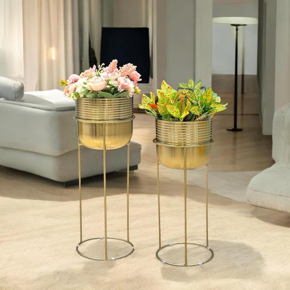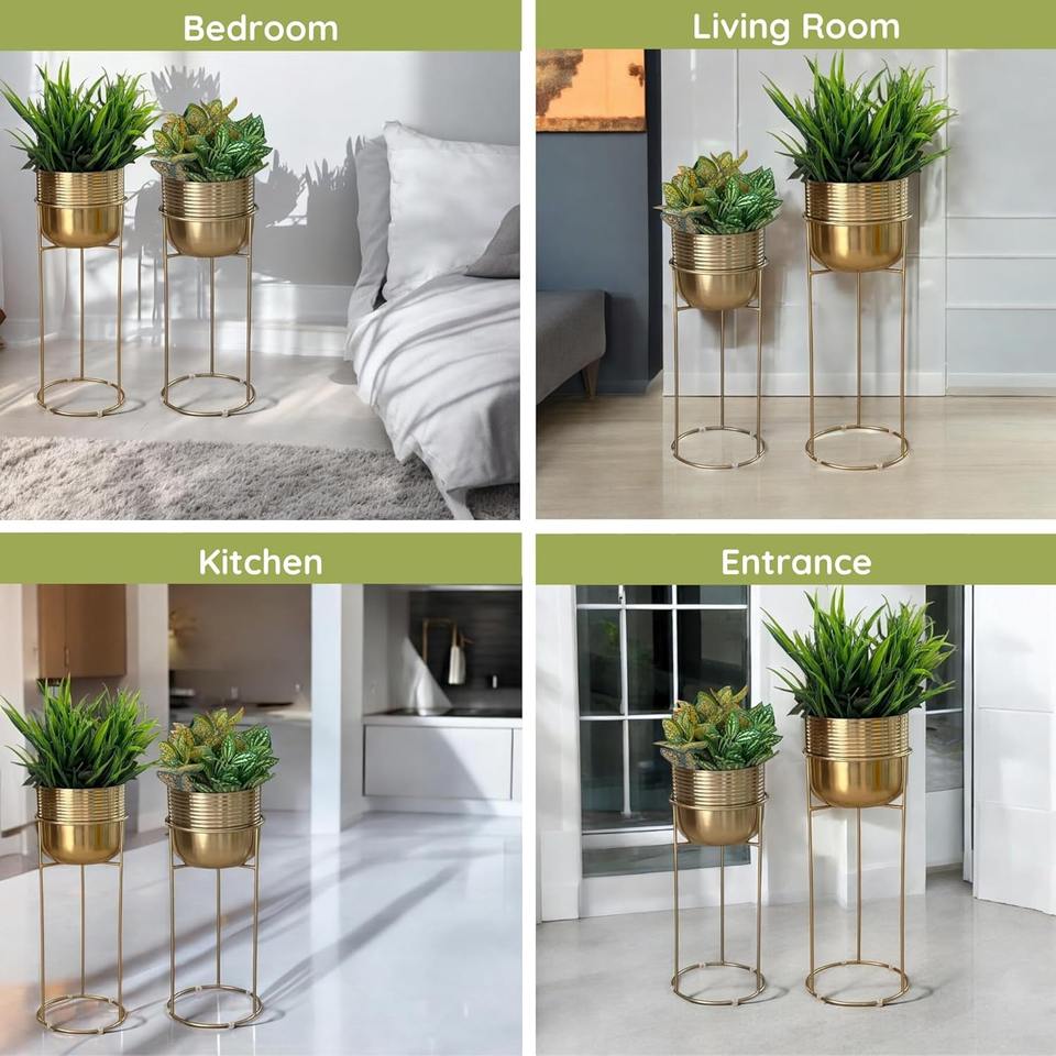 กระถางโลหะสีทองแบบเรียบง่ายสำหรับตกแต่งบ้านในร่มเหมาะสำหรับห้องนั่งเล่นมุมการแสดงต้นไม้แบบทันสมัยและพื้นที่น้อยที่สุด
